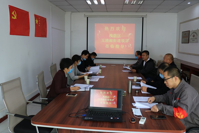 5月9日上午,槐蔭區(qū)玉清湖街道黨工委書(shū)記逯明一行蒞臨公司,考察指導(dǎo)公司常態(tài)化疫情防控和復(fù)工復(fù)產(chǎn)工作,并召開(kāi)座談會(huì),深入了解企業(yè)發(fā)展過(guò)程中遇到的困難,直面問(wèn)題、現(xiàn)場(chǎng)辦公。玉清湖街道應(yīng)急管理辦公室副主任陳國(guó)瑞、黨建工作辦公室副主任李偉偉、區(qū)自然資源局玉清湖國(guó)土所所長(zhǎng)張超陪同。公司董事長(zhǎng)徐福厚、副董事長(zhǎng)魏士山、總經(jīng)理徐鵬、黨支部書(shū)記兼生產(chǎn)副總孔祥健、董事會(huì)秘書(shū)兼辦公室主任王德華熱情接待了逯明書(shū)記一行。![]()