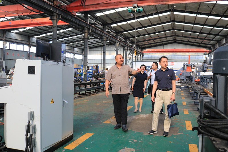 7月7日下午,濟南市人社局社保基金監管處處長董文、濟南市委機要保密局法規宣傳處副處長張克亞等市疫情處置工作黨建保障巡回督導工作組領導一行,蒞臨我公司調研指導常態化疫情防控工作和企業復工復產工作,濟南市槐蔭區玉清湖街道黨工委副書記、人大工作室主任牛國蕾,黨建工作辦公室副主任李偉偉陪同。公司董事長徐福厚、總經理徐鵬、黨支部書記兼生產副總孔祥健、董事會秘書兼辦公室主任王德華熱情接待了董文處長一行。