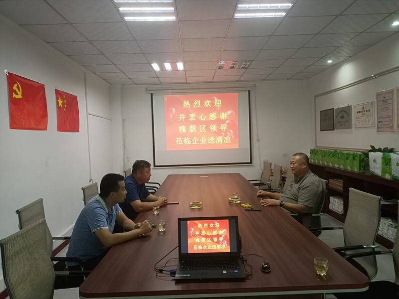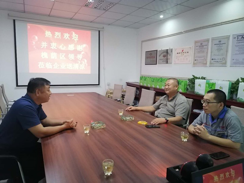 8月19日上午,受槐蔭區(qū)領(lǐng)導(dǎo)委托,槐蔭區(qū)工信局副局長惠健一行蒞臨公司進(jìn)行夏季送清涼活動(dòng)。公司董事長徐福厚、董事會(huì)秘書兼辦公室主任王德華熱情接待了惠健副局長一行。